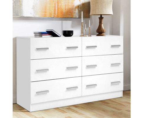 ALREY 6 DRAWER LOWBOY / DRESSER - 690(H) x 1105(W) x 420(D) - WHITE