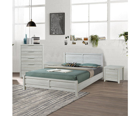 ALVARRO QUEEN 3 PIECE (BEDSIDE) BEDROOM SUITE - WHITE ASH