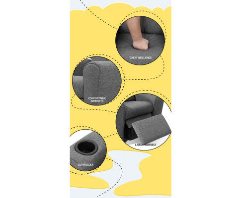 AMARIS KIDS SINGLE LINEN FABRIC RECLINER CHAIR (KID-RECLINER-GY) - GREY