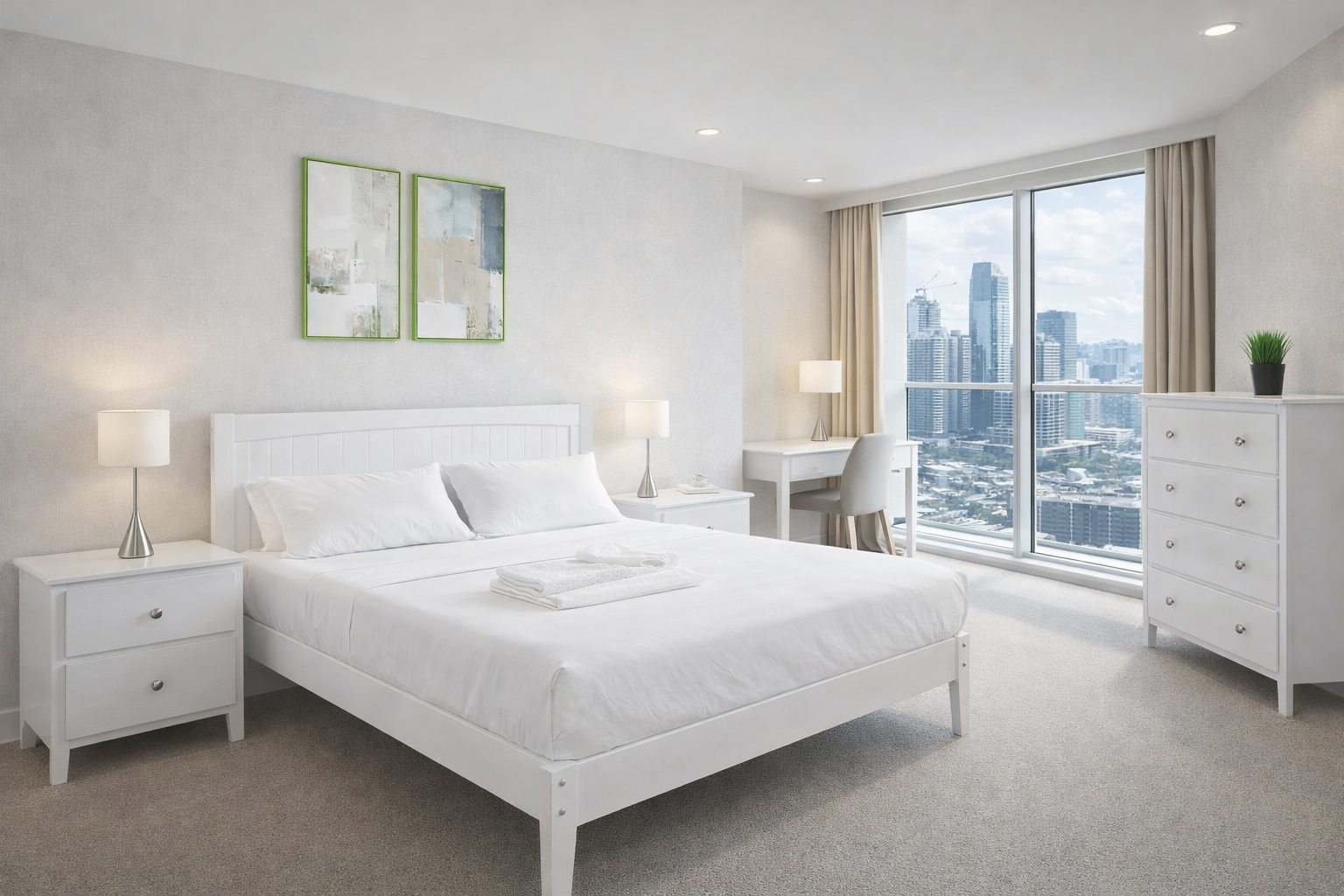 SUITE CONSISTS OF: 1 x Bed , 2 x Bedsides , 1 x Dresser, 1 x Mirror.