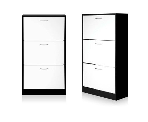 BART 3 TIER SHOE CABINET - WHITE WITH BLACK