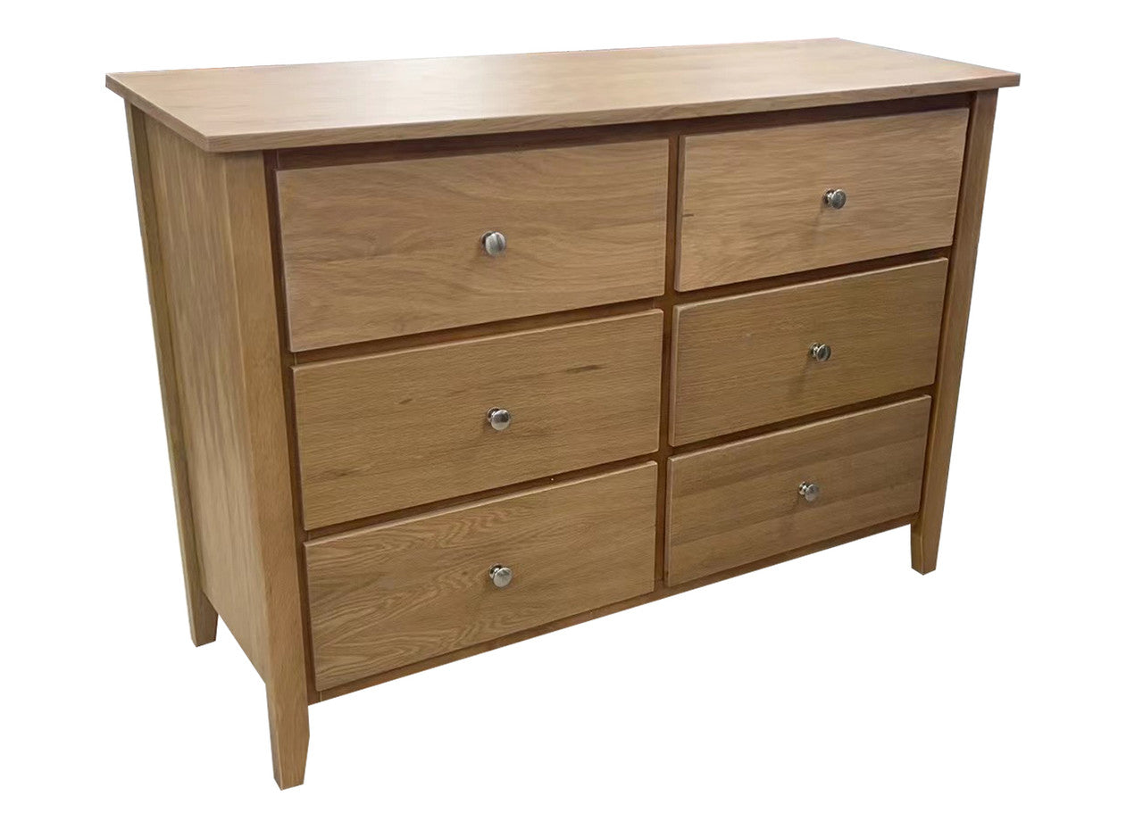 BELLEVILLE 6 DRAWERS OAK LOWBOY CHEST - 850(H) x 1200(W) x 450(D) - LIGHT OAK