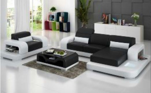 SUITE CONSISTS OF: 1 Seater / 2 Seater (Top Bonded Leather + PVC) / Chaise / Full PVC + 2 Tempered glass - Coffee Table.