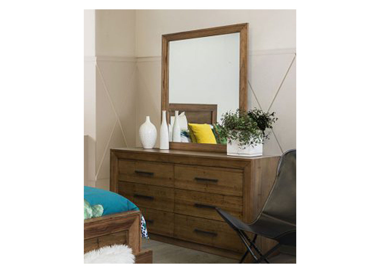 BLYTHE 6 DRAWER DRESSER WITH MIRROR - WORMY OAK
