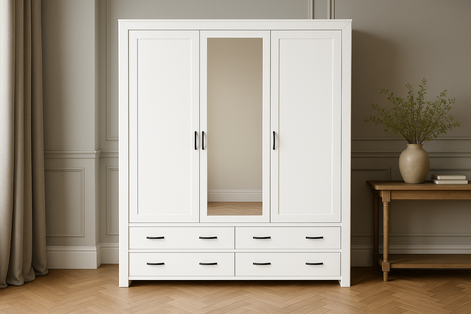 BUSTIN (AUSSIE MADE) 3 DOOR / 4 DRAWER MIRROR WARDROBE - ASSORTED PAINTED COLOURS - STARTING FROM $1499