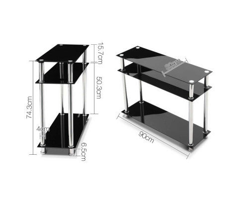 CAIRO 3-TIER GLASS CONSOLE TABLE - 750(H) x 900(W) x 300(D) - BLACK