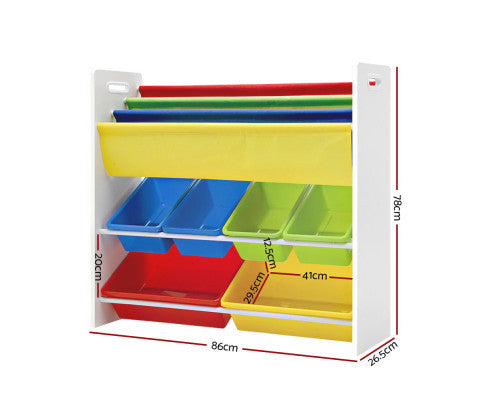 CARMEL 3-TIER KIDS BOOKCASE WITH 6 STORAGE BOXES - WHITE
