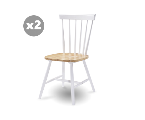 CECILIA (SET OF 2) TWO TONED SOLID RUBBERWOOD DINING CHAIR - DANISH NATURAL OAK + WHITE