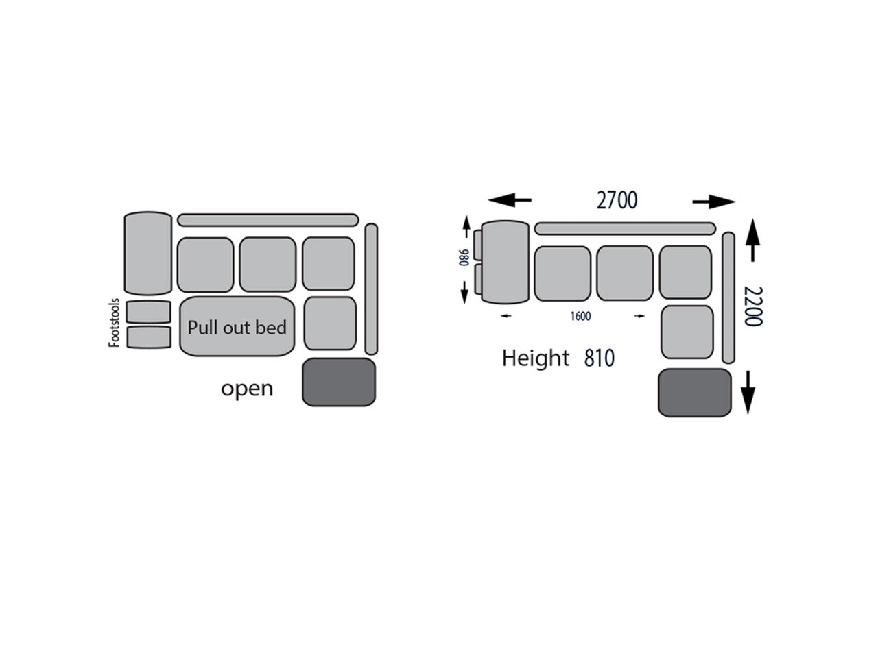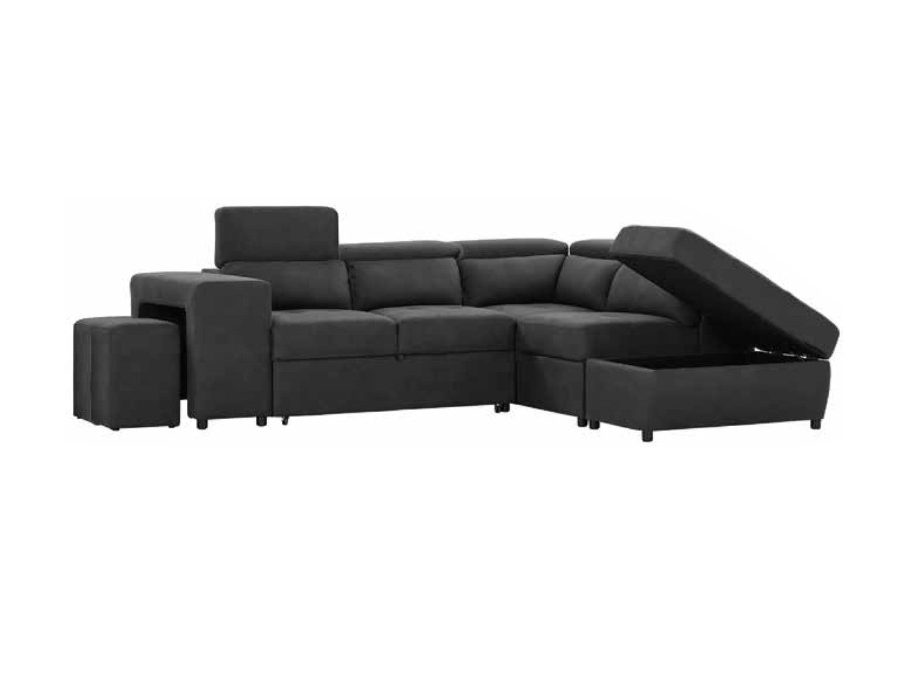 CLAUSS FABRIC 2 SEATER + CHAISE WITH OTTOMAN - RHINO/CHARCOAL