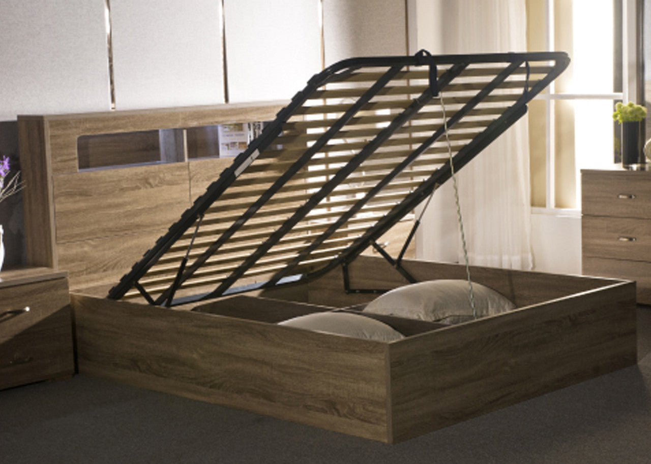 DALLAS DOUBLE OR QUEEN 6 PIECE (THE LOT) STORAGE FRONT GAS LIFT OR SIDE DRAWERS BED - GREY OAK