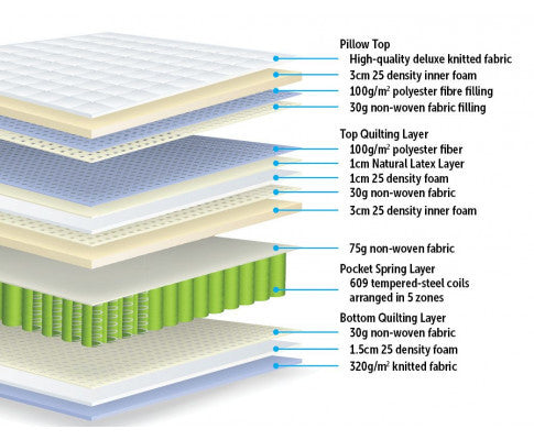 QUEEN GARNET PILLOW TOP POCKET SPRING FOAM MATTRESS - MEDIUM FIRM