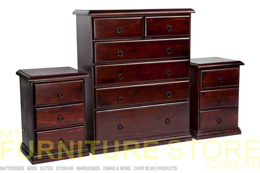 DIMENSIONS/SIZE: Tallboy: 1150(H) x 840(W) x 420(D) / Bedside: 660(H) x 500(W) x 420(D).
