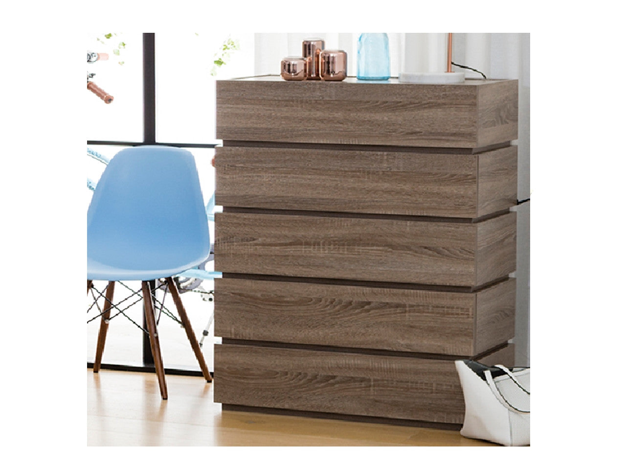 CUBIST 750(W) 5 DRAWER TALLBOY CHEST - 115(H) X 750(W) -MOCHA