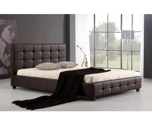 DOUBLE DELUXE LEATHERETTE BED FRAME - BROWN