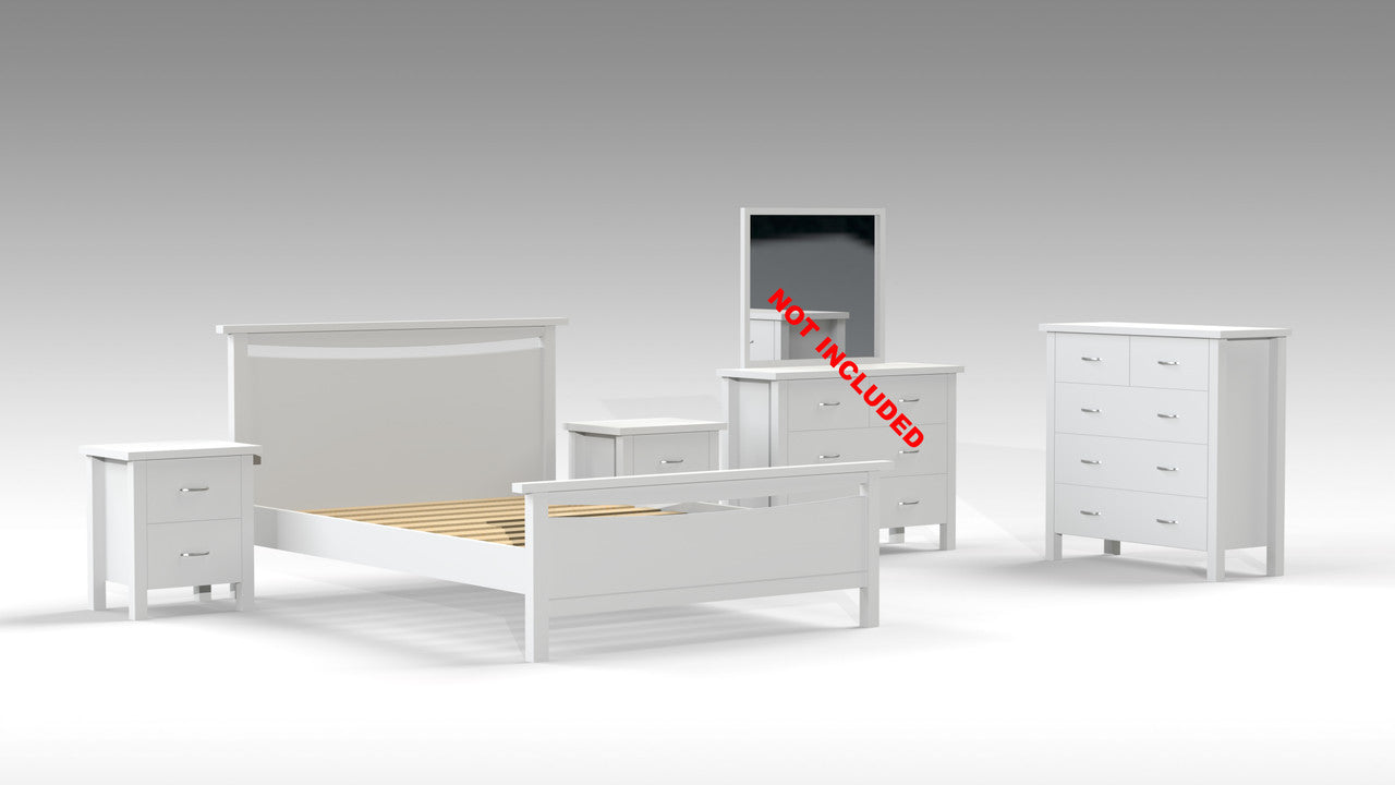 DOUBLE OR QUEEN ALODIA (AUSSIE MADE) 4 PIECE (TALLBOY) BEDROOM SUITE - ASSORTED COLOURS