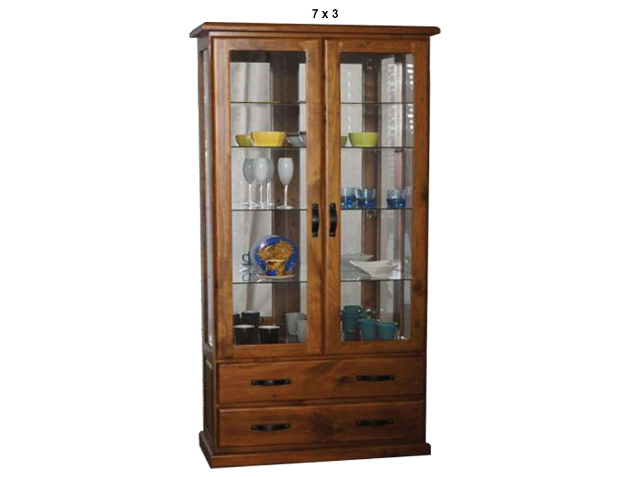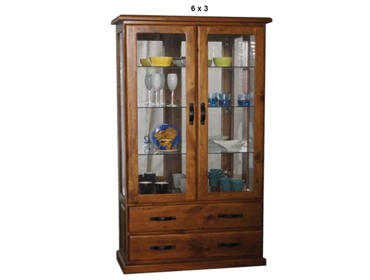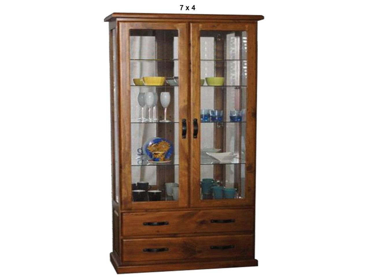 DROVER (AUSSIE MADE) 2 DOOR / 2 DRAWER HIGHLINE GLASS DISPLAY CABINET WITH MIRRORED BACK COLLECTION - ASSORTED STAINED COLOURS - STARTING FROM $1599