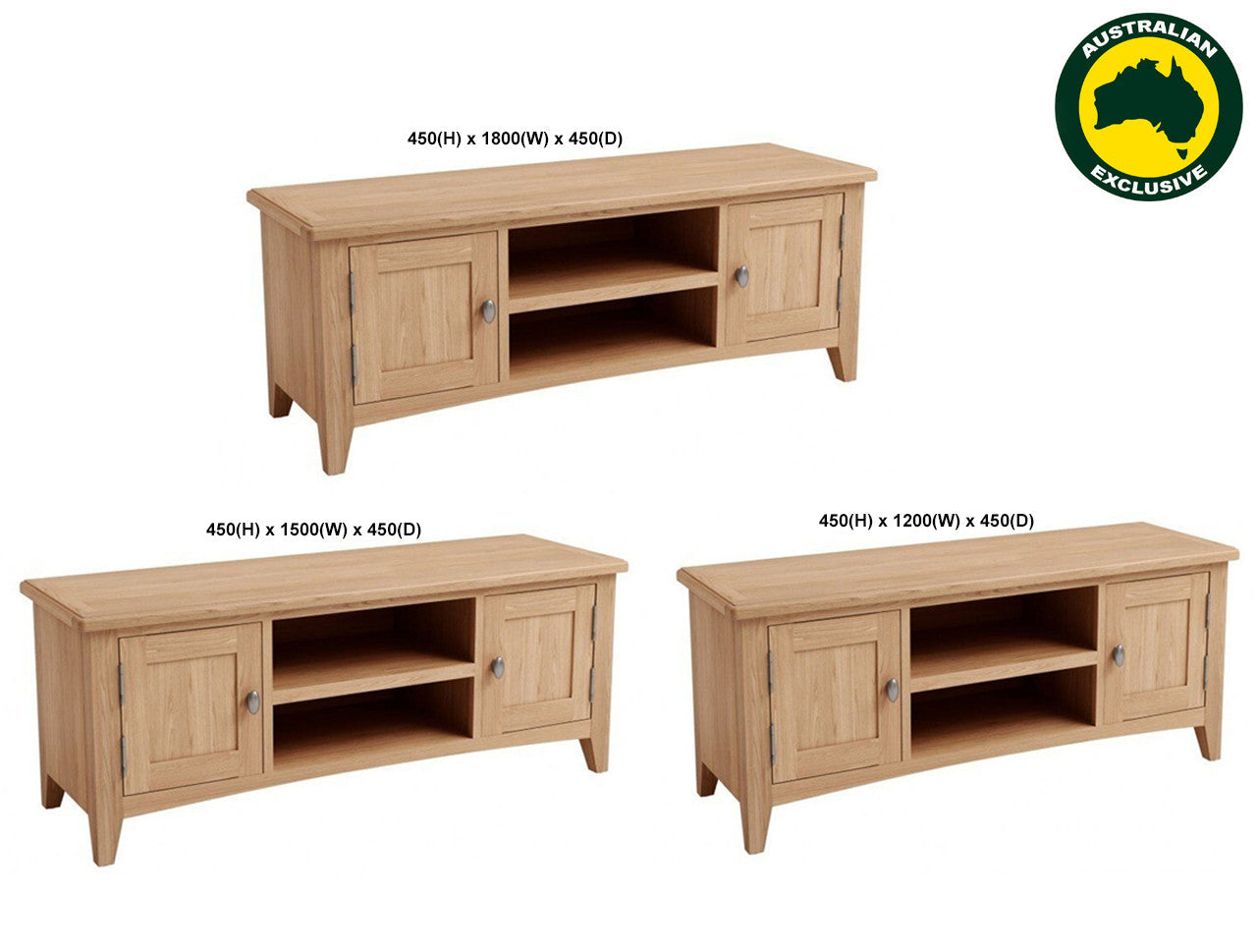 ELEGANCE (AUSSIE MADE) 2 DOOR / 2 SHELF TV UNIT COLLECTION - TASSIE OAK COMBINATION - ASSORTED STAINED COLOURS - STARTING FROM $999
