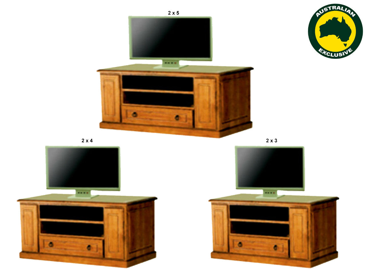ELTHAM (AUSSIE MADE) LOWLINE TV UNIT WITH 2 DVD/CD PULLOUTS & 1 DRAWER COLLECTION - ASSORTED STAINED COLOURS - STARTING FROM $999