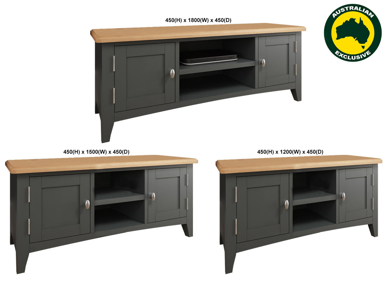 EMMETT (AUSSIE MADE) 2 DOOR TV UNIT COLLECTION - TASSIE OAK COMBINATION - ASSORTED PAINTED / STAINED COLOURS - STARTING FROM $899