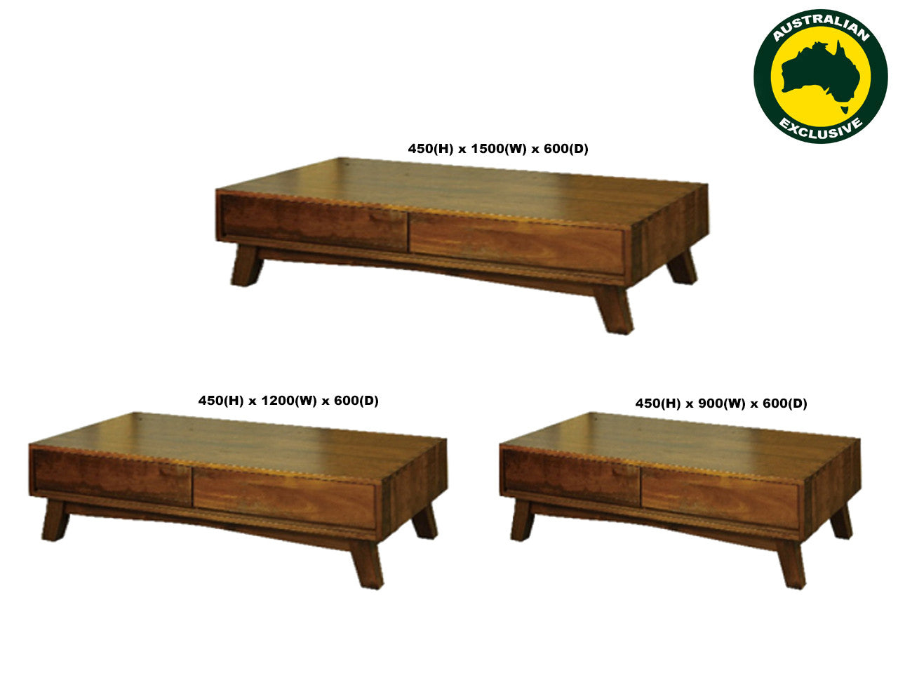 EUREKA (AUSSIE MADE) 2 DRAWER COFFEE TABLE COLLECTION - ASSORTED STAINED COLOURS - STARTING FROM $599