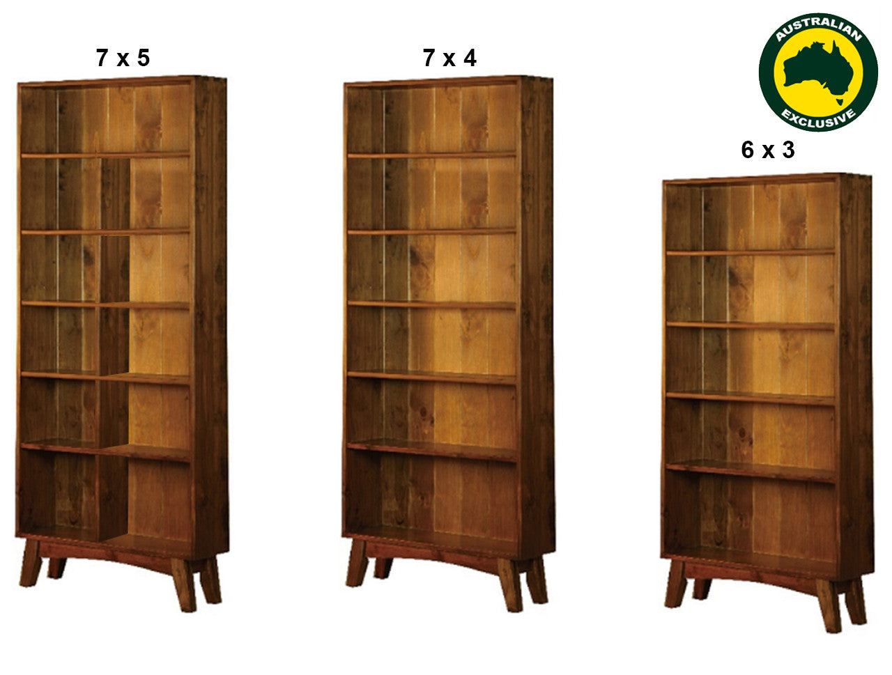 EUREKA (AUSSIE MADE) HIGHLINE BOOKCASE WITH WIDE T&G BACKING COLLECTION - ASSORTED STAINED COLOURS - STARTING FROM $649