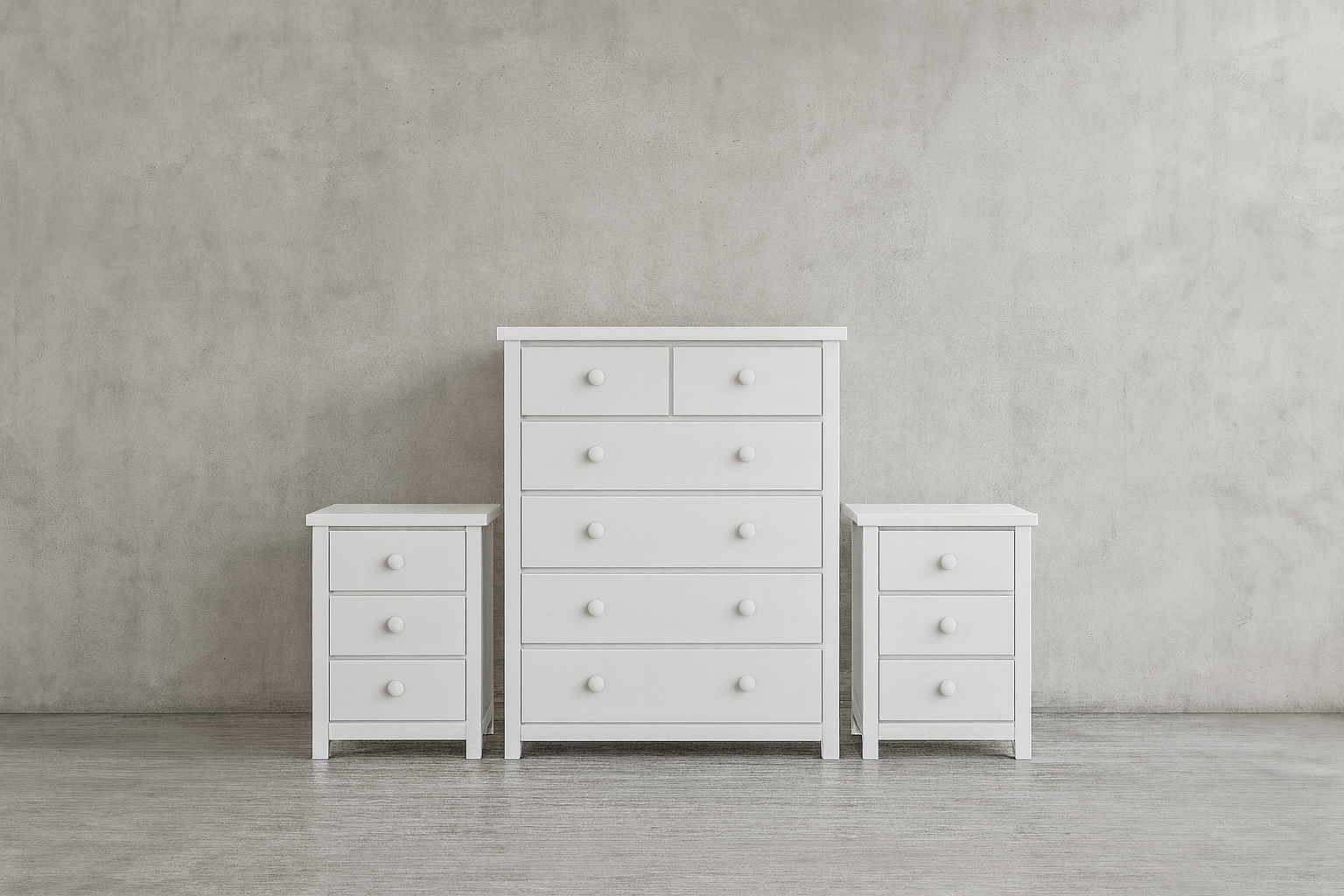 CONSISTS OF: 1 x Tallboy; 2 x Bedside tables.