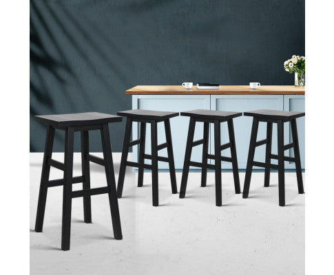 FLYNN (SET OF 4) WOODEN BACKLESS BAR STOOLS - BLACK
