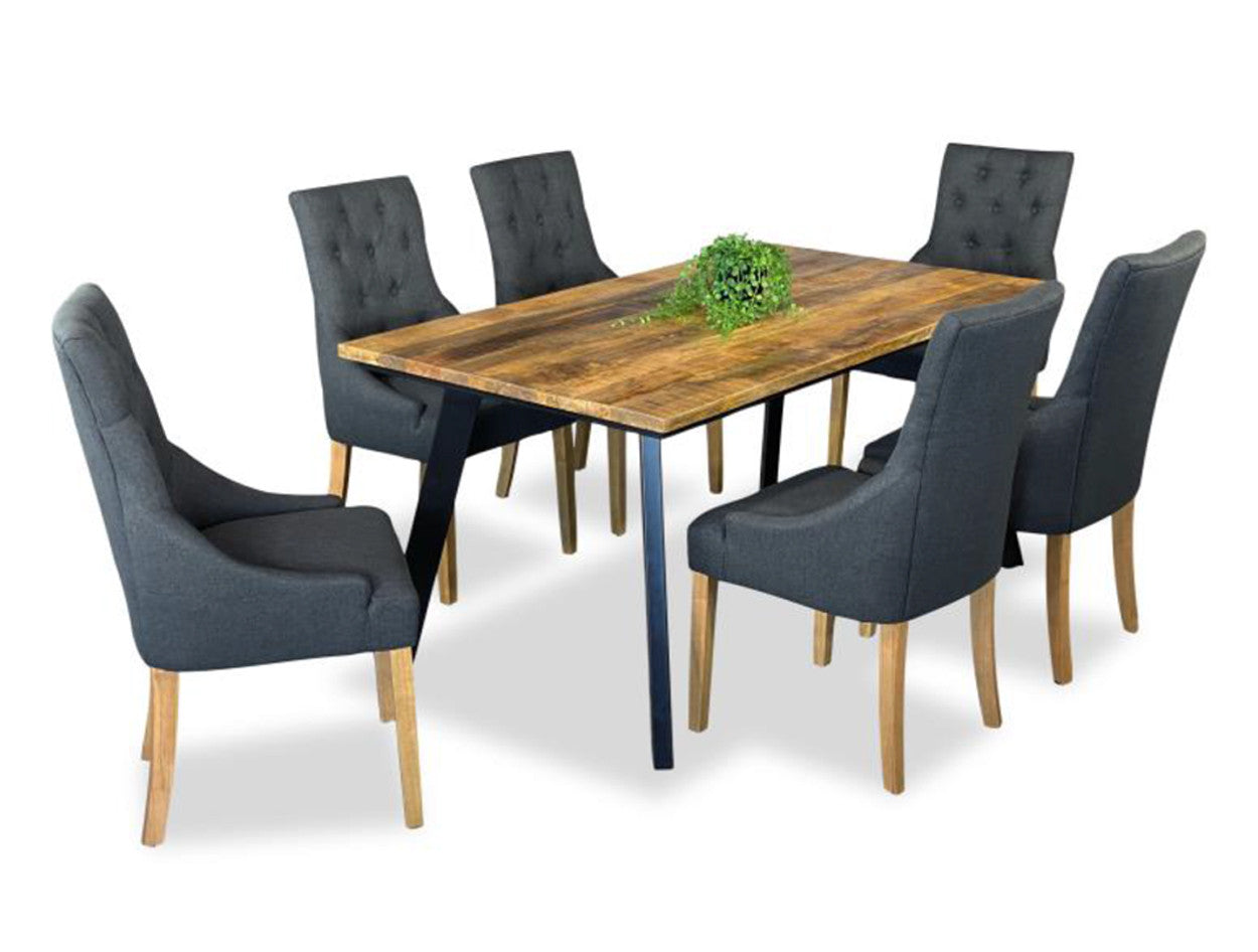 FOUNDRY 7 PIECE DINING SUITE - 2000(W) x 1000(D) - WITH RIGA CHAIRS - DARK GREY