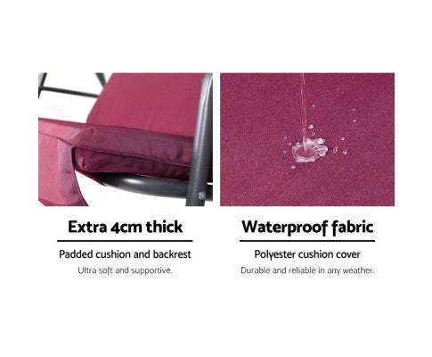 GENEVIEVE OUTDOOR 3 SEATER CANOPY SWING CHAIR - WINE RED