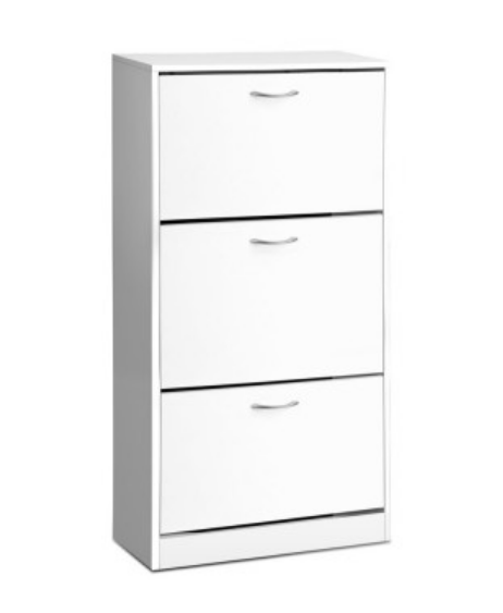 GLASSGOGH3 TIER SHOE CABINET - WHITE