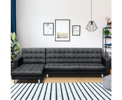 GLENDFORD PU LEATHER ADJUSTABLE SOFA BED - BLACK