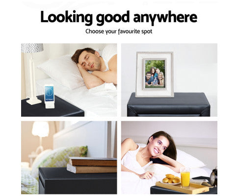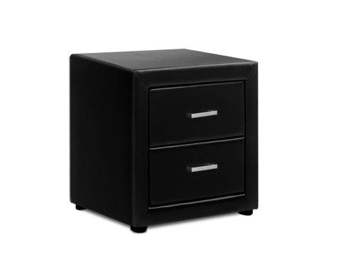 HANNAH 2 DRAWER LEATHERETTE BEDSIDE TABLE - 500(H) x 490(W) - BLACK