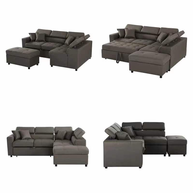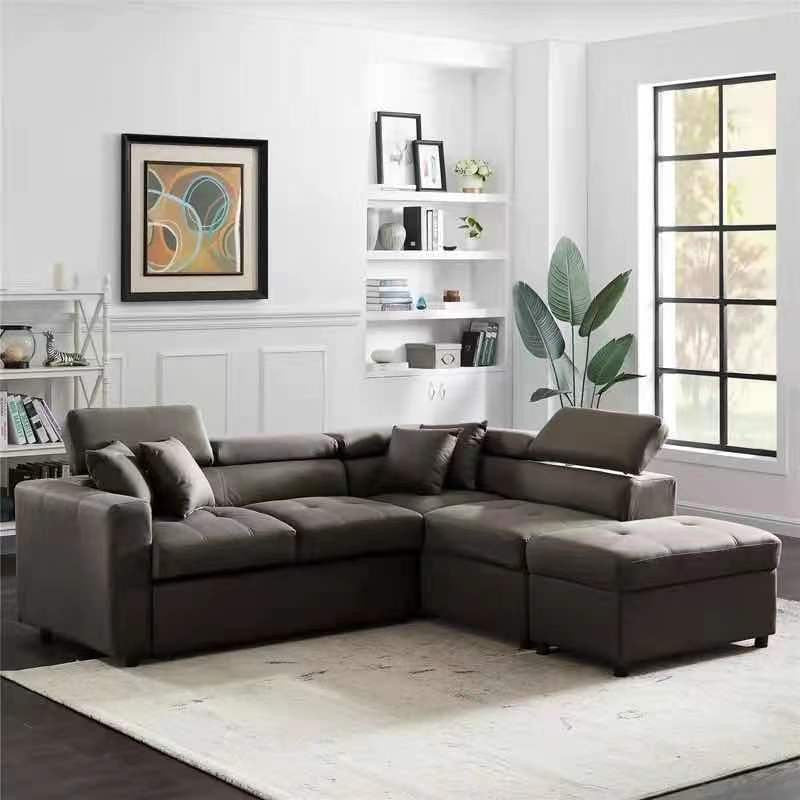 HOLDEN 3 SEATER FABRIC CHAISE LOUNGE SUITE WITH PULL OUT BED AND OTTOMAN (RHF OR LHF) - AS PICTURED