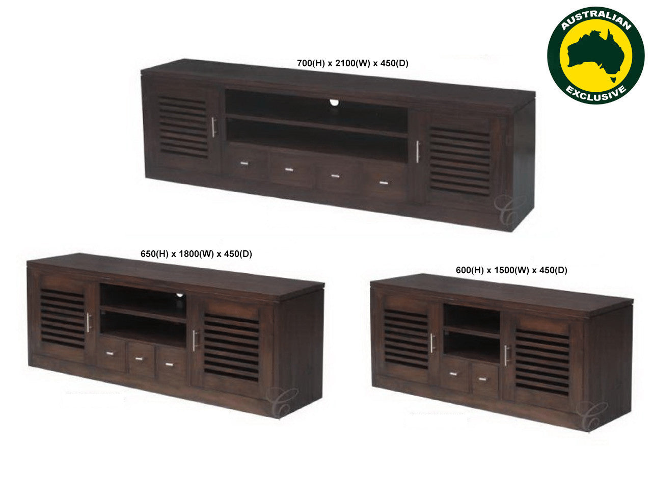 HOLLAND (AUSSIE MADE) LOWLINE ENTERTAINMENT UNIT COLLECTION - ASSORTED STAINED COLOURS - STARTING FROM $1099