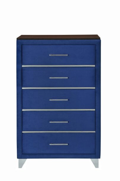 JAYCEE VELVET 5 DRAWER TALLBOY - BLUE