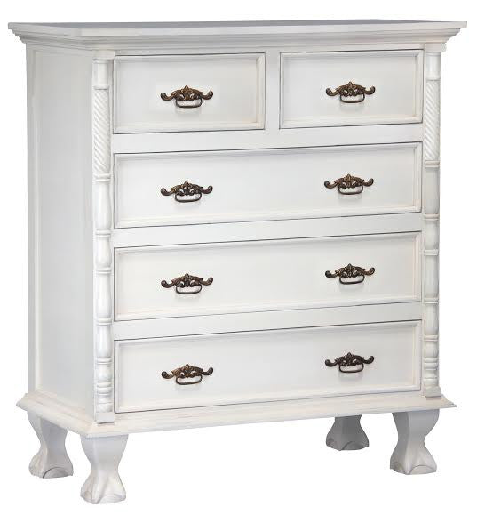 JEPARA 5 DRAWER TALLBOY ( TB 005 CV PL) 1200(H) x 1100(W) - WHITE