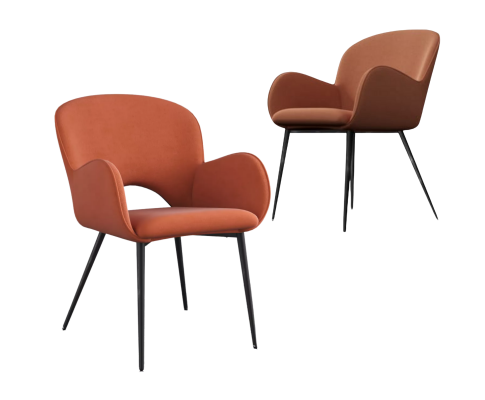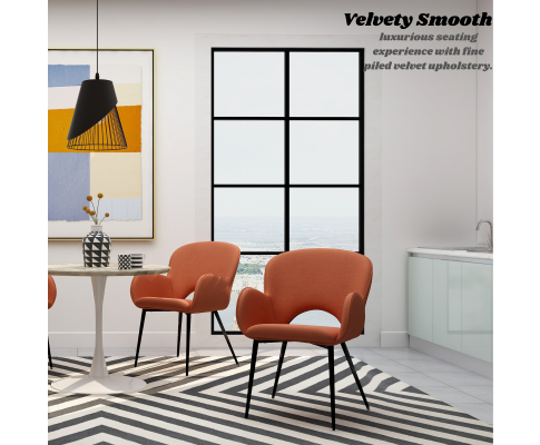 JEZRYLL (SET OF 2) FABRIC ARMREST DINING CHAIR - ORANGE VELVET