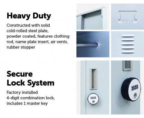 - Built-in air vents for locker ventilation.