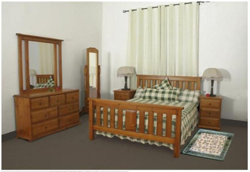 SUITE INCLUDES: 1x Bed, 1x Bedside, 1x Dresser, 1x Mirror , 1x Tallboy