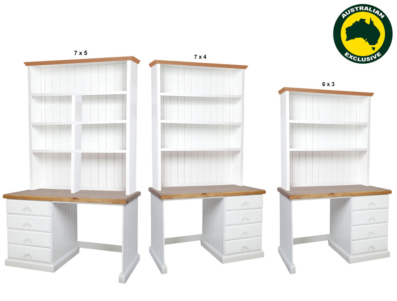 MACQUARIE (AUSSIE MADE) 4 DRAWER DESK + HUTCH COLLECTION - ASSORTED PAINTED / STAINED COLOURS - STARTING FROM $1299