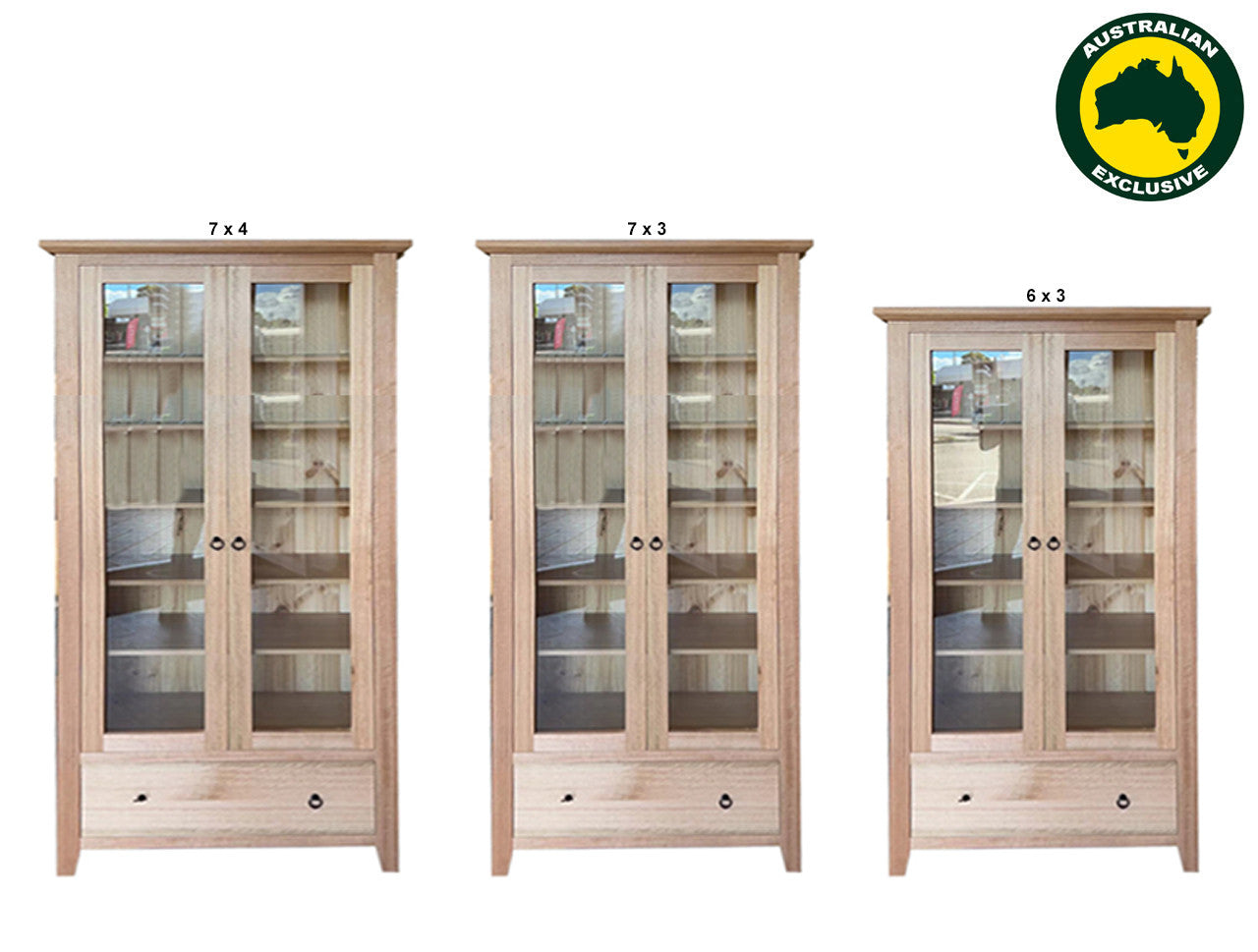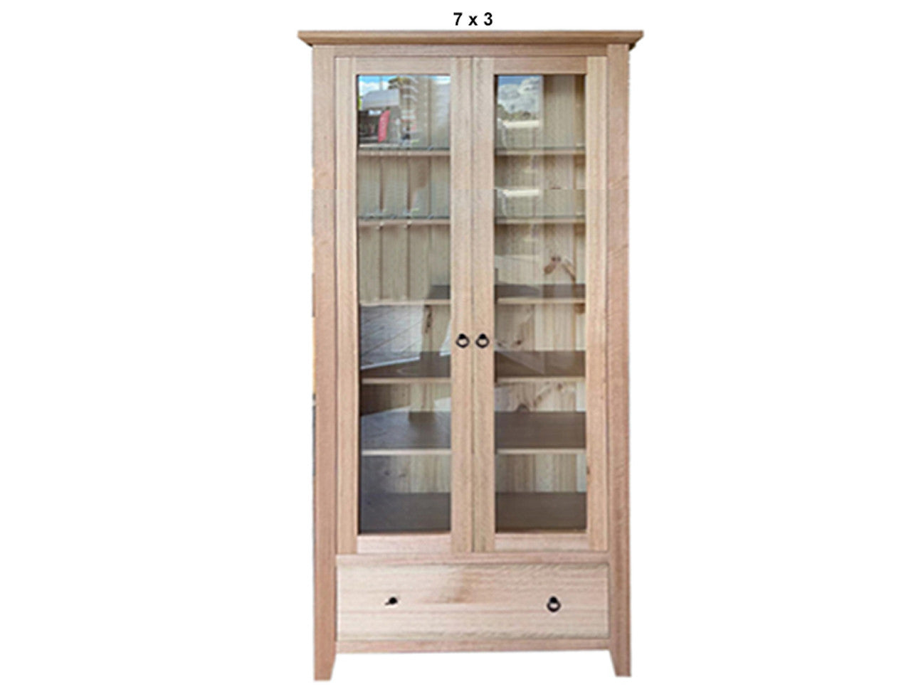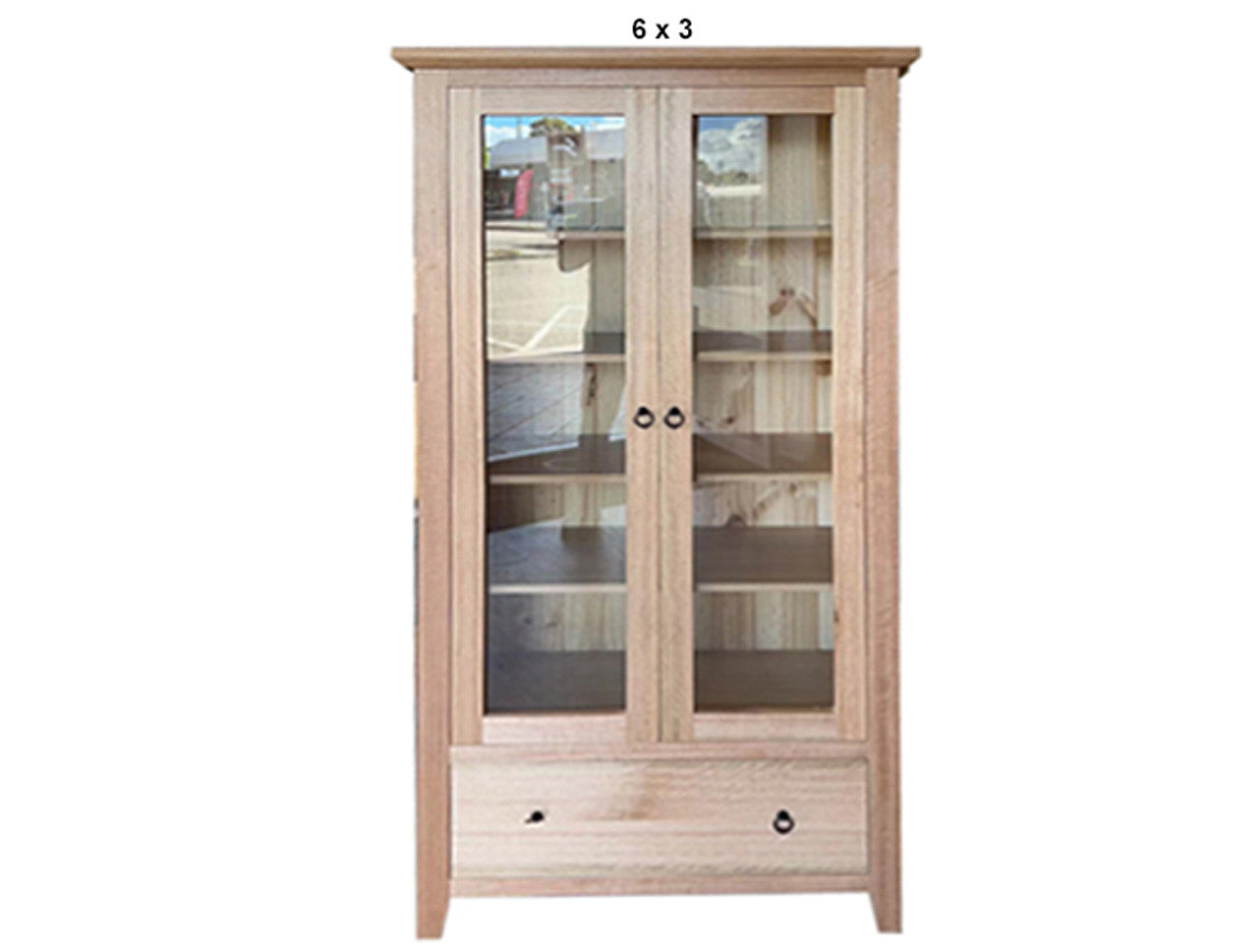 MANILLA (AUSSIE MADE) 2 GLASS DOOR / 1 BLANKET DRAWER LIBRARY UNIT COLLECTION - TASSIE OAK COMBINATION - ASSORTED STAINED COLOURS - STARTING FROM $1699