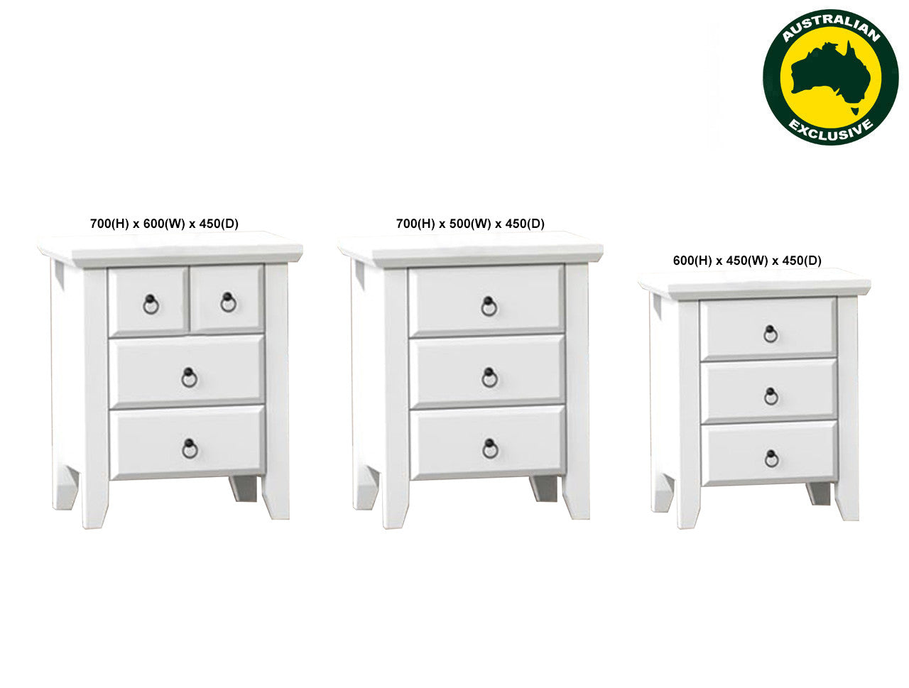 MANILLA (AUSSIE MADE) BEDSIDE TABLE COLLECTION - ASSORTED PAINTED COLOURS - STARTING FROM $399
