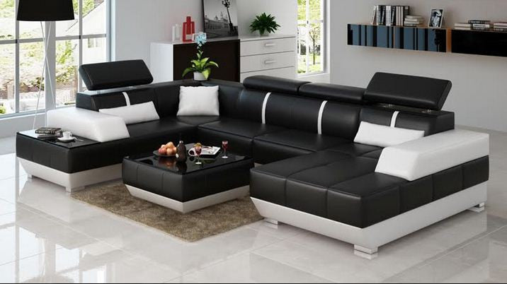 SUITE CONSISTS OF: 2 + 1 Seater (Top Bonded Leather + PVC) / Full PVC + Glass - Coffee Table / Chaise /Corner.