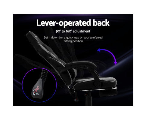 MATTHIAS OFFICE COMPUTER GAMING CHAIR WITH FOOTREST- BLACK & GREY