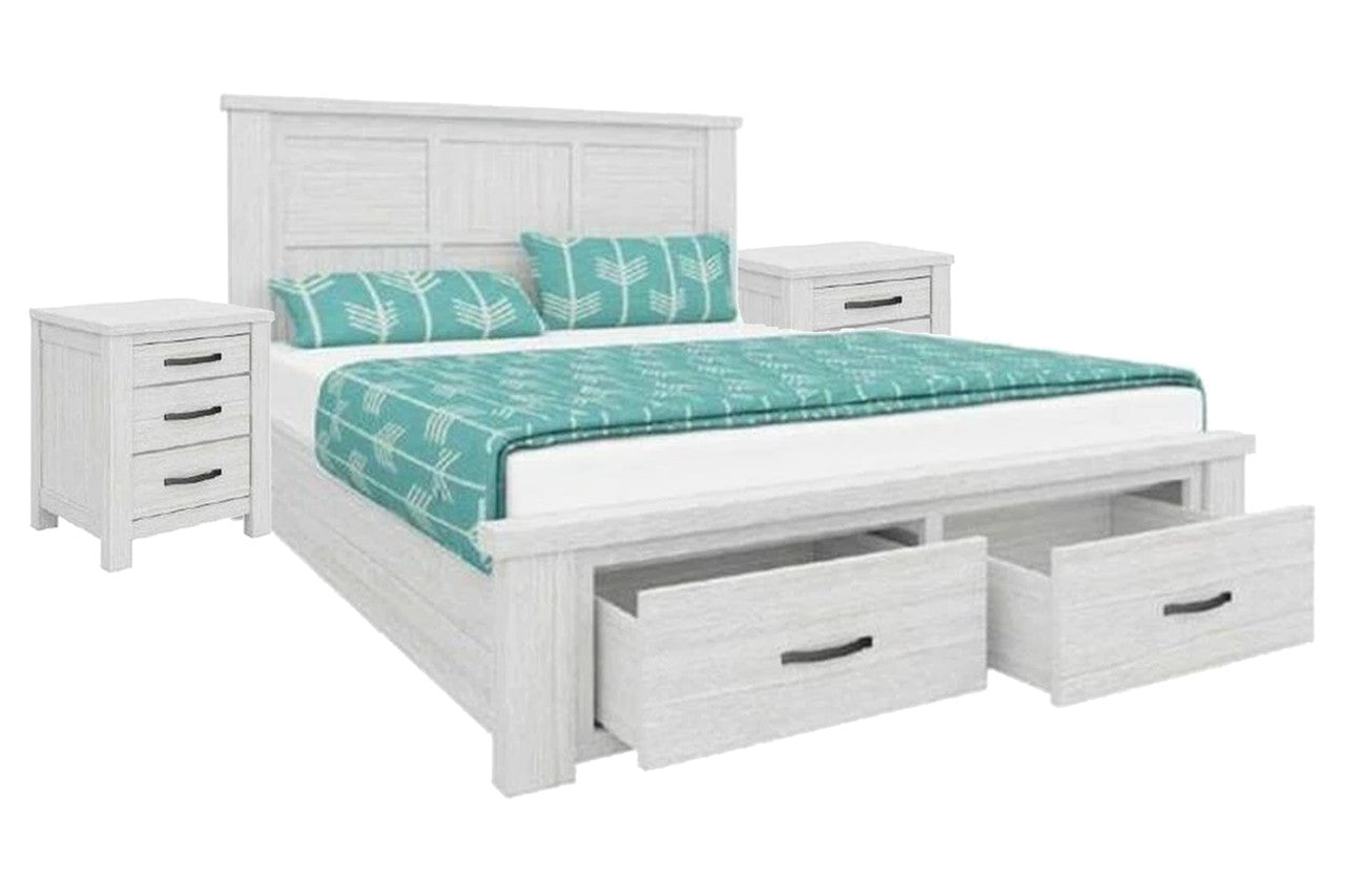 MILDRED DOUBLE OR QUEEN 3 PIECE BEDSIDE BEDROOM SUITE (6-12-15-9-14-1) - WHITE WASH