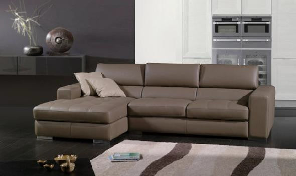 MONIQUE (F2031) 3 SEATER LEATHER/ETTE COMBINATION CHAISE LOUNGE - ASSORTED COLOURS