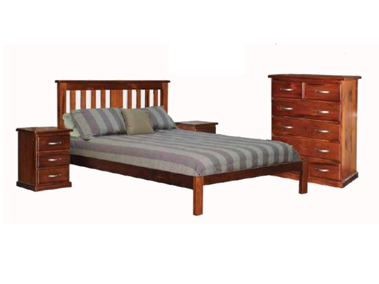 CONSISTS OF: 1 x Queen Bed , 2 x Bedside Tables , 1 x Tallboy.