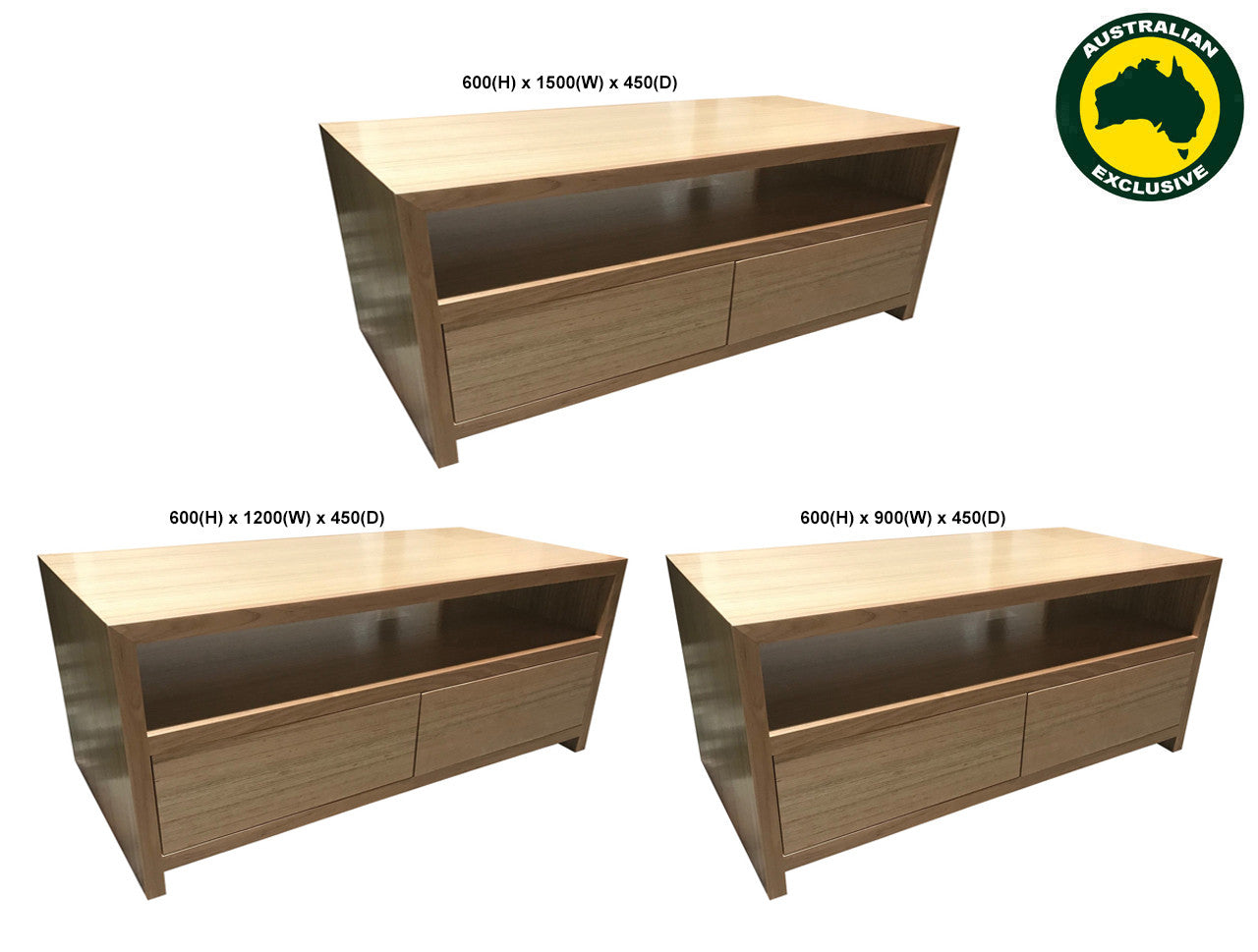 MORGAN (AUSSIE MADE) 2 DRAWER TV ENTERTAINEMNT UNIT COLLECTION - TASSIE OAK COMBINATION - ASSORTED STAINED COLOURS - STARTING FROM $799