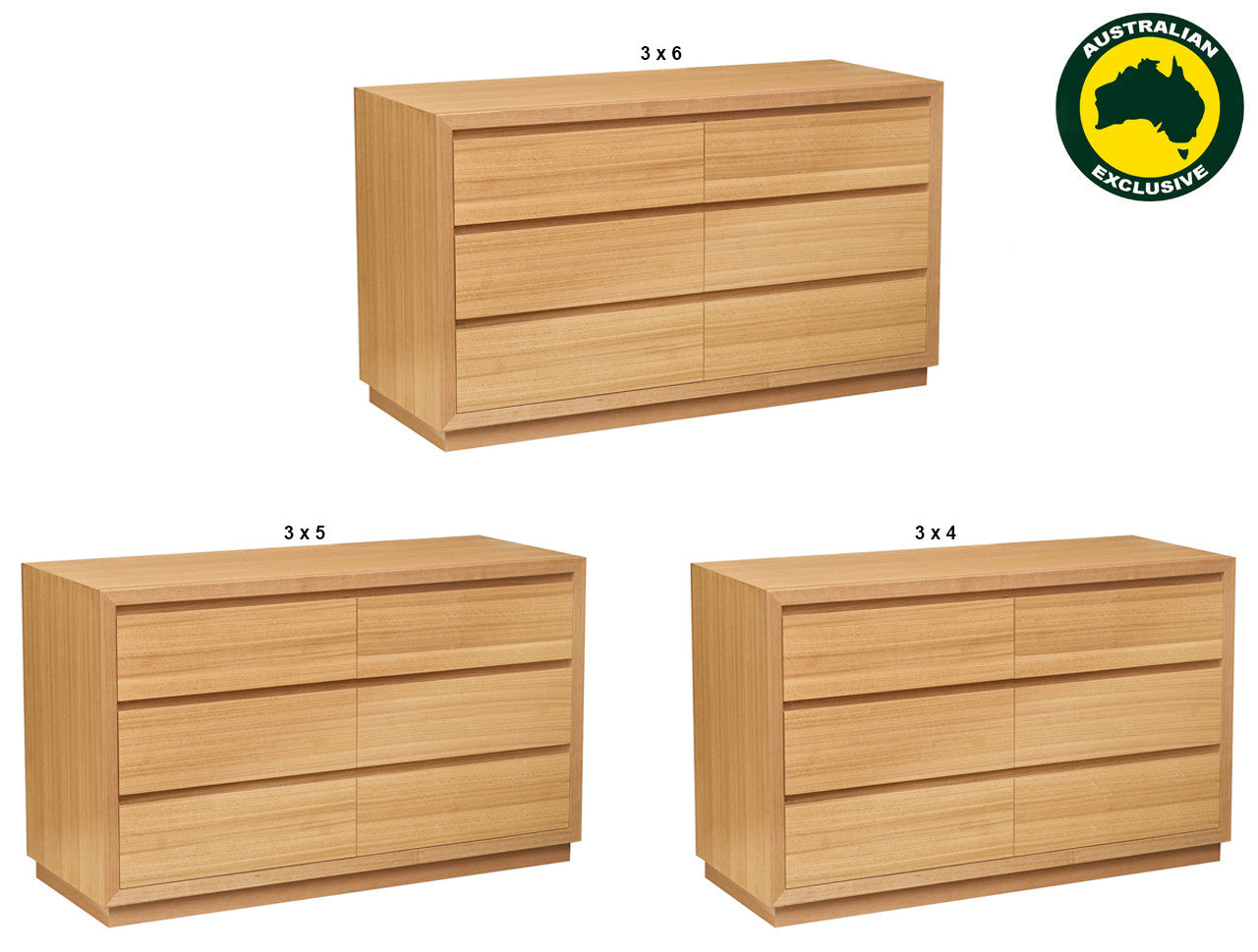 MORGAN (AUSSIE MADE) 6 DRAWER (3+3) LOWBOY COLLECTION - TASSIE OAK COMBINATION - ASSORTED STAINED COLOURS - STARTING FROM $1499