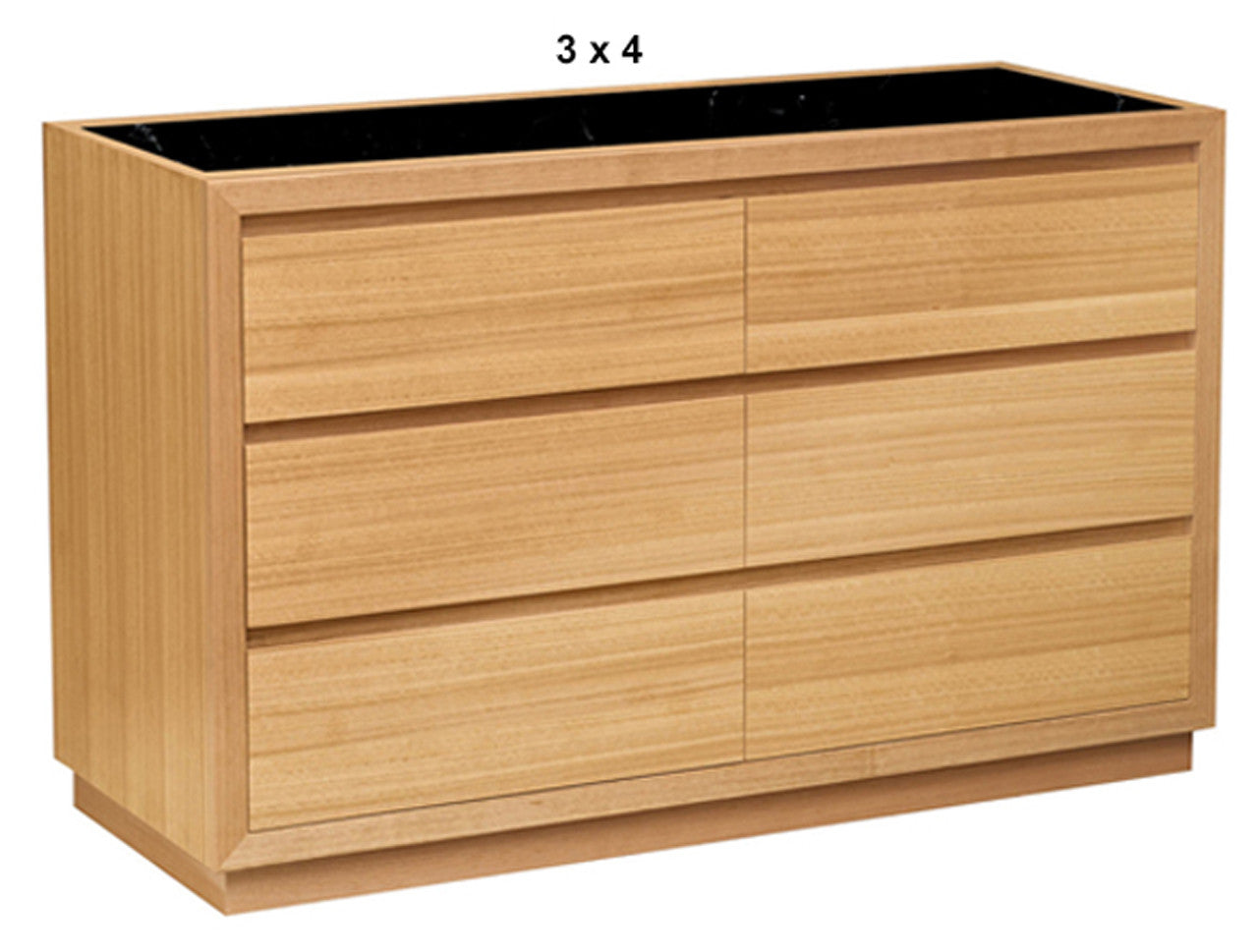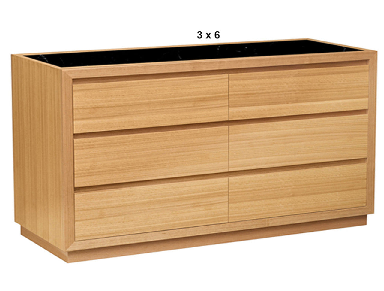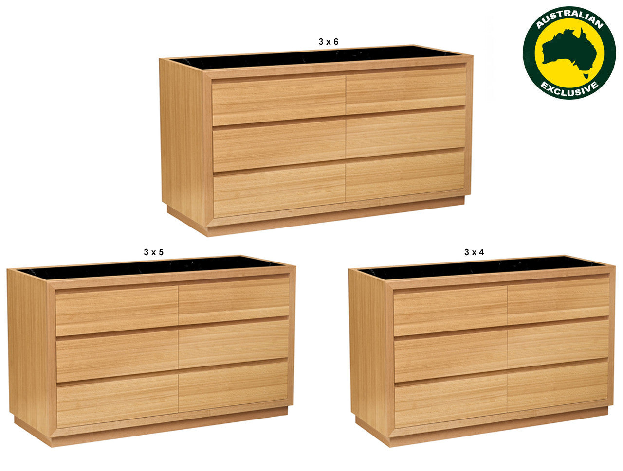MORGAN (AUSSIE MADE) 6 DRAWER (3+3) LOWBOY WITH MARBLE TOP INSERT COLLECTION - TASSIE OAK COMBINATION - ASSORTED STAINED / MARBLE / GLASS COLOURS - STARTING FROM $1699
